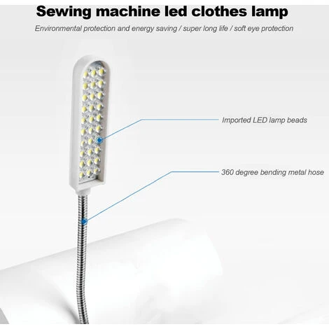 Il cucito è una cosa molto delicata, quando usi una macchina da cucire, hai bisogno di una lampada a LED che si illumini, per facilitare il tuo cucito. Lampada a LED con spina, interruttore sul retro del magnete b. Può essere assorbito sulla macchina da cucire.