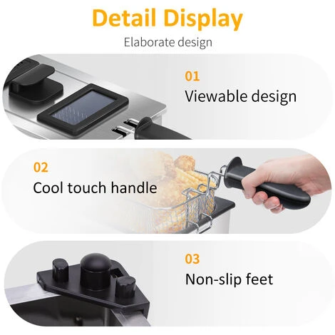Aigostar Kenny – Friggitrice ad olio in acciaio inox 3 Litri con timer e controllo della temperatura. Contenitore rimovibile, coperchio di visualizzazione e cestello per friggere con ganci. 2200W