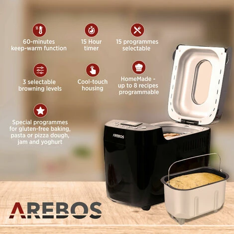 Immagina che siano le 8,30 di sera e ti venga voglia di gustare del pane appena sfornato la mattina dopo alle 7. Con questa macchina del pane non avrai alcun problema a realizzare il tuo desiderio. Versa tutti gli ingredienti nel contenitore, seleziona il programma desiderato, regola il livello di doratura con l’apposito comando, seleziona il peso, quindi usa il tasto del timer per programmare una preparazione di 10,5 ore.