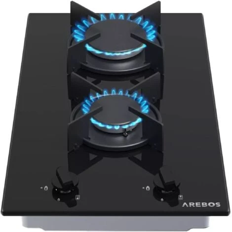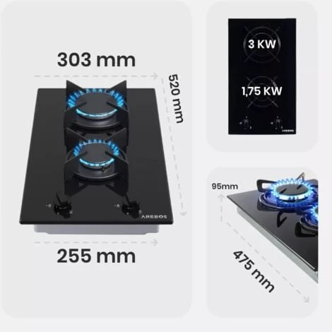 [POTENTE PIANO DI COTTURA A GAS] AREBOS Fornello a gas a 2 fuochi. Il fornello è dotato di un bruciatore rapido da 3000 W e di un bruciatore semi-rapido da 1750 W. Perfetto per qualsiasi tipo di utilizzo, che si tratti di arrostire, cucinare, cuocere a vapore o friggere.