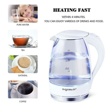 Bollitore elettrico in vetro 1.7 Lt Aigostar