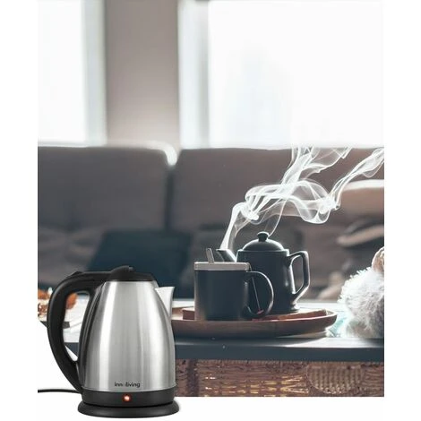 Bollitore cordless in acciaio- Capacità max: 1,8,0L, Potenza: 1800-2200W, Corpo in acciaio inossidabile, Base girevole a 360°, Elemento riscaldante nascosto, Filtro anticalcare, Interruttore ON/OFF con indicatore luminoso, Spegnimento automatico, Protezione contro il funzionamento a secco, Alimentazione: 220 – 240V ~ 50/60Hz