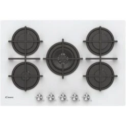 Candy CVG6BR4WPW Piano Cottura A Gas 4 Zone Griglie In Ghisa 60 Cm Vetro Temperato Bianco