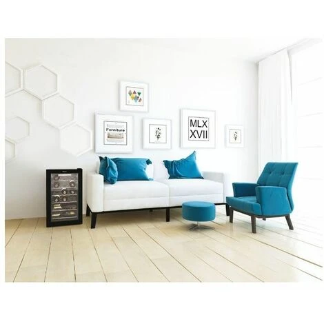 Candy DiVino CWC 021 M/N. Posizionamento dell’apparecchio: Libera installazione, Colore struttura: Nero, Colore interno: Nero. Capacità bottiglie: 21 bottiglia/bottiglie, Tipo di prodotto: Cantinetta vino con compressore, Intervallo temperatura (zona 1): 7 – 18 °C. Classe efficienza energetica: G, Consumo energetico annuo: 152 kWh, Scala di efficienza energetica: Da A a G. Tipo di controllo: Manopola, Tipo di lampada: LED, Applicazioni per il controllo supportate: hOn. Larghezza: 400 mm, Profondità: 550 mm, Altezza: 700 mm