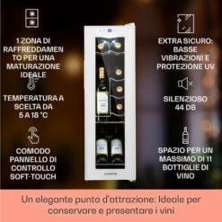 Klarstein Shiraz 12 Slim Uno – Frigorifero Per Vini, 32 L/12 Bottiglie, Touch, 85 W, 5-18 °C, LED