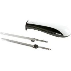 Coltello da cucina multifunzionale, taglia senza faticaPane, torte, carne, formaggio, ecc.Facile da usare: Funzionamento con un solo pulsantePulsante di espulsione per rimuovere le lameLame dentate in acciaio inossidabilePotente motore da 150 W.Conservazione compatta, si adatta al cassetto portaoggettiAdatto sia per mancini che destrorsiSilenzioso: 85 dBPeso ridotto: Solo 592 g