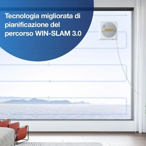 ECOVACS WINBOT W1 PRO: Con la sua tecnologia all’avanguardia, WINBOT W1 PRO è il miglior robot pulisci finestre per la tua casa. Il sistema automatico a spruzzo incrociato ECOVACS aiuta WINBOT a rimuovere lo sporco e le macchie dalle finestre. Grazie al rinnovato sistema WIN-SLAM 3.0, il robot intelligente può persino determinare il modo più efficiente per pulire la massima area anche su finestre piccole. Anche le interruzioni di corrente non sono un problema per il tuo robot, perché le nostre migliori e più innovative caratteristiche di sicurezza lo mantengono sempre in rotta. Finestre scintillanti e pulite al tocco di un pulsante.