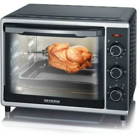 - Dettagli prodotto – SEVERIN forno elettrico 30 litri, 1600W fino a 230 °C, 45,3 x 40 x 34,5 cm, con timer da 120 minuti, griglia, teglia, vassoio raccogli briciole, girarrosto, articolo numero TO 2056