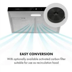 La cappa aspirante è adatta alla modifica per funzione di ricircolo. A tal fine è necessario acquistare separatamente un filtro ai carboni attivi al numero articolo 10033473.