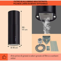 - Dimensioni cappa aspirante: ca. 35 x 60 cm (ØxA)