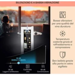 OPERATIVITA’ SILENZIOSA: Il motore silenzioso a 45 dB e l’elegante design rende la nostra cantinetta vino il miglior frigo vino per la conservazione professionale di vino a casa tua così come nelle aree bar, ristoranti e sale di degustazione.
