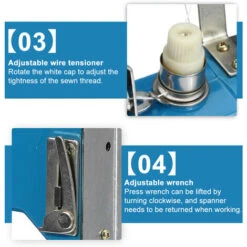 &#12304;Due modi per tagliare la linea&#12305; Il chiudi borsa ha metodi di taglio del filo automatici e manuali. Automatico: basta inserire il filo per cucire nella fessura di taglio per tagliare facilmente il filo per cucire. Manuale: il filo si rompe facilmente macinando la lama. , vengono utilizzati tessuti non tessuti, sacchi di riso, coperte rigide, sacchi di pelle bovina, pelle, asciugamani, sacchi di carta. eccetera per fabbriche, magazzini agricoli, logistica espressa, e-commerce, chimica e altre industrie. NON può essere utilizzato come fognatura domestica.