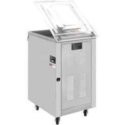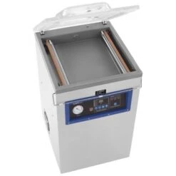 La camera di vuoto è caricata dall’alto e, grazie alle sue dimensioni di 440 x 445 x 65 mm permette di sigillare più prodotti allo stesso tempo. L’altezza della camera è di 120 mm ed è pertanto adatta anche a prodotti più grandi. Dopo l’inserimento sarà rimossa l’aria all’interno del sacchetto e quest’ultimo sarà ermeticamente sigillato.