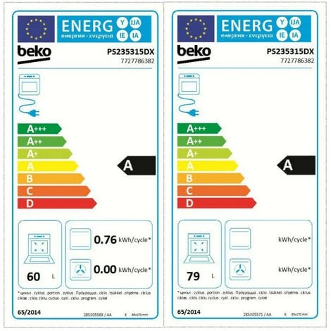 Indice di efficienza energetica (cavità principale EEI): 95.