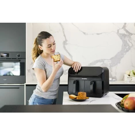 A differenza delle comuni friggitrici ad aria, PremierTech PT8LAF permette la doppia cottura con tempi e temperature differenti. Questo vuol dire che sarà possibile preparare due primi diversi, oppure un primo e secondo per una cena competa in un colpo solo, ecc. Il dispositivo è infatti composto da due distinte camera di cottura, ovvero i vassoi con rivestimento antiaderente privo di BPA e PFOA, all’interno dei quali introdurre gli ingredienti.