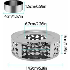 Materiale e dimensioni: il fondo della teiera è realizzato in acciaio inossidabile di alta qualità, con elevata durezza, superficie liscia e facile da pulire. La teiera ha un diametro di 5,8 pollici e il portalampada ha un diametro di 1,57 pollici. Lo scaldateiera è adatto alla maggior parte delle teiere