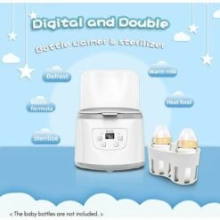 Conservazione del biberon:Puoi utilizzare lo scaldabiberon per conservare 2 biberon, quando non viene utilizzato, risparmia spazio e il coperchio può proteggere le bottiglie dalla polvere. Viene fornito con una spazzola per la pulizia, una clip per bottiglia e un misurino per un uso più comodo.