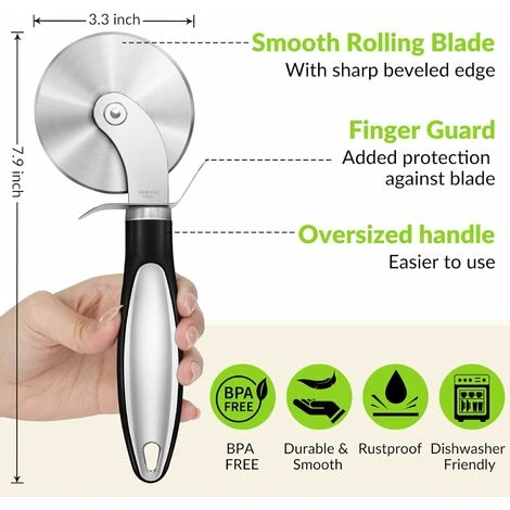 Rotella per pizza facile da pulire e tagliare: la lama affilata consente in ogni caso un taglio netto e, a differenza dell’uso di un coltello, preme effettivamente la corteccia e topping insieme per mantenere la pizza topping sulla tua pizza